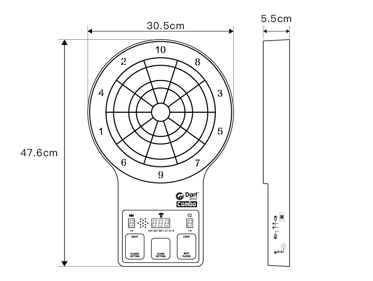 At the end of the game, the total score from 9 rounds is calculated—the player with the highest score wins!Bring along the DartShot Combo, fire up the atmosphere, and challenge your friends to an exciting showdown!