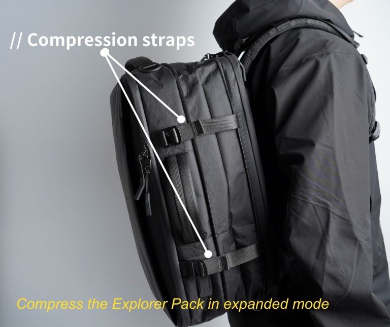 - Compression straps with metal hooks