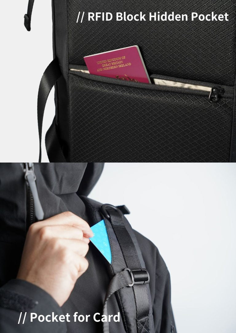 - RFID block hidden pocket on back panel