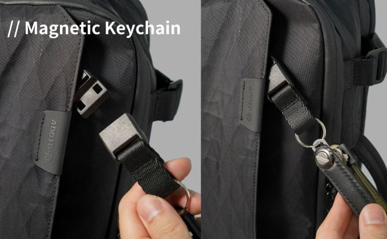 - Magnetic keychain in front compartment