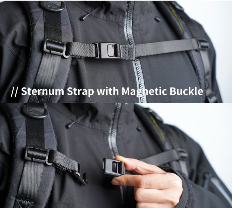 - Adjustable sternum strap with magnetic buckle