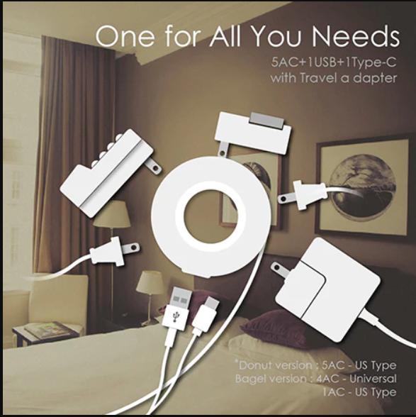 Ever had a power outlet at the cafe or in your hotel room that was just too far away? With the Mogics Super Bagel, you bring the power to you.