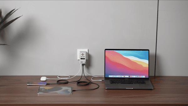 Equipped with multiple output ports, including AC, 3*USB Type-C, 1*USB Type-A, this adapter ensures universal compatibility with all your devices, from smartphones and tablets to laptops and cameras.